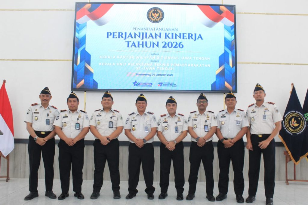 Semarang Indept Jateng.My.Id – Kepala Balai Pemasyarakatan (Bapas) Kelas II Pati mengikuti kegiatan Penandatanganan Perjanjian Kinerja Tahun 2026 yang diselenggarakan oleh Kantor Wilayah Direktorat Jenderal Pemasyarakatan (Ditjenpas) Jawa Tengah. Kegiatan ini berlangsung di Aula Pancasila Lapas Semarang, Selasa (6/1). Acara diawali dengan pembacaan Deklarasi Janji Kinerja Pegawai yang dipimpin oleh Kepala Bagian Tata Usaha […]