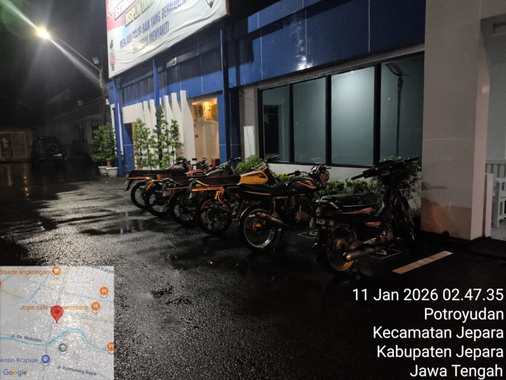 Jepara – Polres Jepara Indept Jateng.My.Id | Kepolisian Resor (Polres) Jepara, Polda Jawa Tengah, melalui Tim Patroli Presisi Siraju kembali membubarkan kerumunan aksi balap liar di sepanjang jalan raya Soekarno-Hatta, Kecamatan Tahunan, hingga Jalan Raya Jepara-Kudus, pada Minggu (11/1/2026) dini hari. Sejumlah unit sepeda motor yang diduga digunakan untuk aksi balap liar berhasil diamankan Polisi. […]