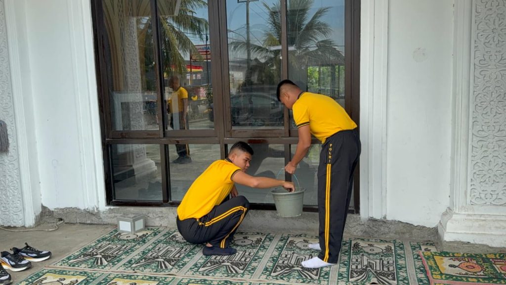 Brimob Polda Metro Jaya Gelar Bakti Sosial Kebersihan di Masjid Jami Nurul Jannah Hegarmukti