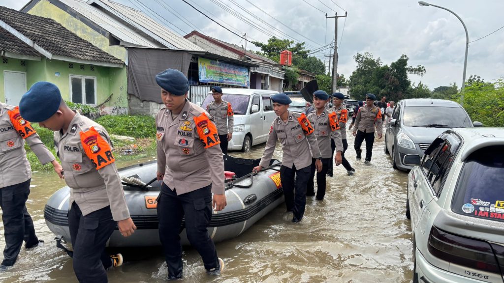 Brimob Polda Metro Jaya Terus Laksanakan Evakuasi Warga Terdampak Banjir di Perumahan The Nebraska Terrace
