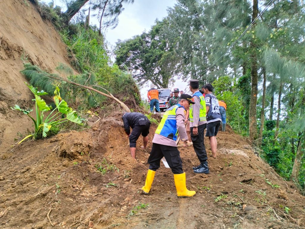 Gercep Polsek Selo Dan TSD Evakuasi Tanah Longsor Tutupi Jalur Alternatif Selo-Ampel Di Dukuh Tompak