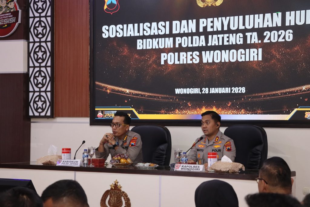 Wonogiri Indept Jateng.My.Id – Bidang Hukum (Bidkum) Polda Jawa Tengah menggelar kegiatan Sosialisasi dan Penyuluhan Hukum Tahun Anggaran 2026 di Polres Wonogiri. Kegiatan tersebut berlangsung di Aula Sanika Satyawada Polres Wonogiri, Rabu (28/1/2026), pukul 09.20 WIB hingga 12.15 WIB. Kegiatan dipimpin langsung oleh Kabidkum Polda Jateng Kombes Pol. Jansen Sitohang, S.I.K., M.H., bersama tim, dan […]