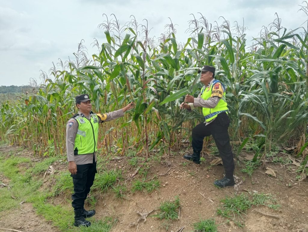 POLSEK JENAR TURUN KE SAWAH, KAWAL TANAMAN JAGUNG SIAP PANEN DUKUNG SWASEMBADA PANGAN NASIONAL