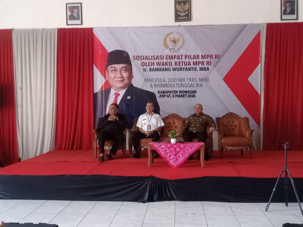 Wonogiri Indept Jateng.My.Id — Wakil Ketua MPR RI Ir. Bambang Wuryanto, M.B.A melakukan kunjungan kerja ke Kabupaten Wonogiri dengan menggelar sosialisasi Empat Pilar MPR RI kepada masyarakat dan penyelenggara pemilu. Kegiatan tersebut berlangsung di Rumah Makan Sayem, Dusun Manggis, Desa Ngadirojo Kidul, Kecamatan Ngadirojo, Jumat (6/3/2026) sekitar pukul 10.00 WIB. Kegiatan yang diikuti sekitar 500 […]