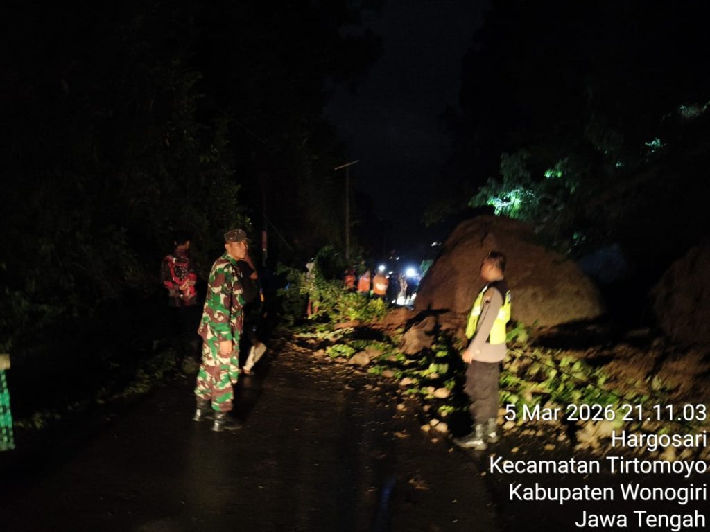 Wonogiri Indept Jateng.My.Id — Respons cepat ditunjukkan jajaran Polsek Wonogiri Kota Polres Wonogiri dalam menangani bencana tanah longsor yang disertai pohon tumbang di Lingkungan Jetis, RT 003 RW 005, Kelurahan Wuryorejo, Kecamatan Wonogiri, Kamis (5/3/2026) malam. Peristiwa tersebut terjadi sekitar pukul 19.45 WIB di lahan Perhutani RPH Cubluk Surakarta BKPH Wonogiri yang berada di tepi […]