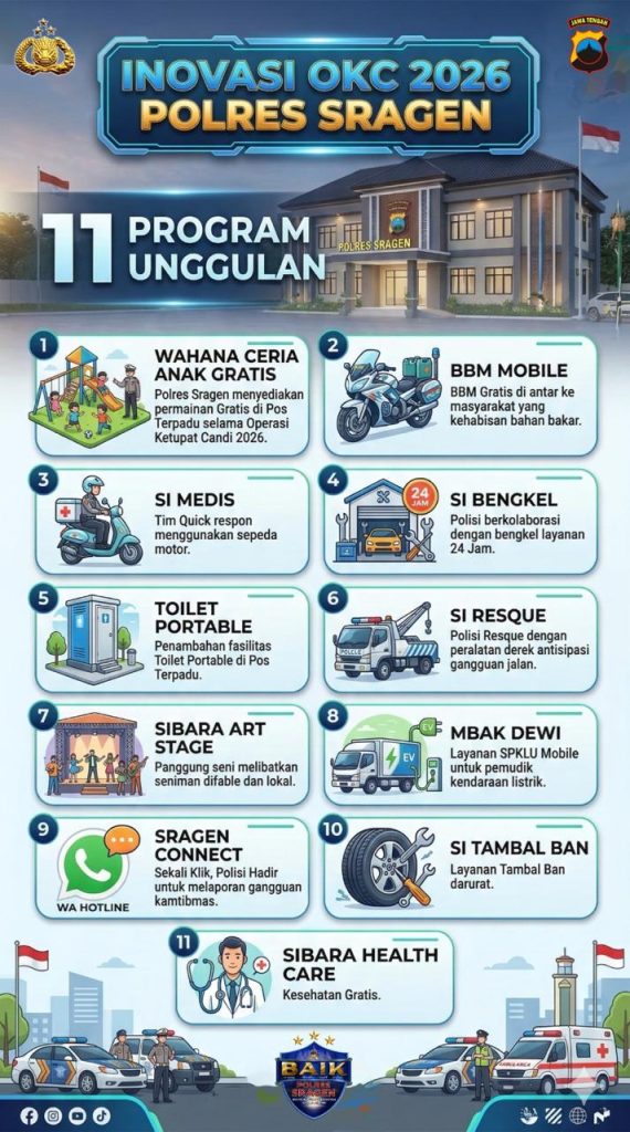 SRAGEN, JATENG Indept Jateng.My.Id – Kesiapan menghadapi arus mudik Lebaran dalam rangka Operasi Ketupat Candi 2026, Satuan Lalu Lintas Polres Sragen bakal menyiapkan berbagai terobosan pelayanan bagi masyarakat. Total ada delapan inovasi layanan yang disiapkan untuk memastikan perjalanan pemudik aman, nyaman, dan mendapatkan pelayanan cepat saat mengalami kendala di jalan. Kasat Lantas Polres Sragen Polda […]