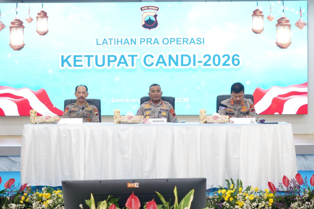 Semarang-Polda Jateng Indept Jateng.My.Id |Kepolisian Daerah Jawa Tengah mematangkan kesiapan pengamanan Hari Raya Idul Fitri 1447 H melalui kegiatan Latihan Pra Operasi (Lat Pra Ops) Terpusat dengan sandi “Ketupat Candi 2026”. Kegiatan yang digelar di Gedung Borobudur Mapolda Jawa Tengah pada Rabu (11/3/2026) tersebut dipimpin langsung oleh Wakapolda Jawa Tengah, Brigjen. Pol. Dr. Latif Usman, […]