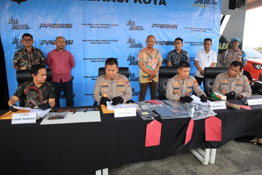 Bekasi Indept Jateng.My.Id – Satuan Reserse Kriminal Polres Metro Bekasi Kota berhasil membongkar aksi premanisme bermodus penarikan motor paksa oleh oknum yang mengaku sebagai pihak leasing. Rilis pengungkapan kasus ini dipimpin langsung oleh Kapolres Kombes Pol Kusumo Wahyu Bintoro S.H S.I.K M.H, didampingi Wakapolres AKBP Davis Busin Siswara, Kasat Reskrim Kompol Dr. Andi Muhammad Iqbal […]