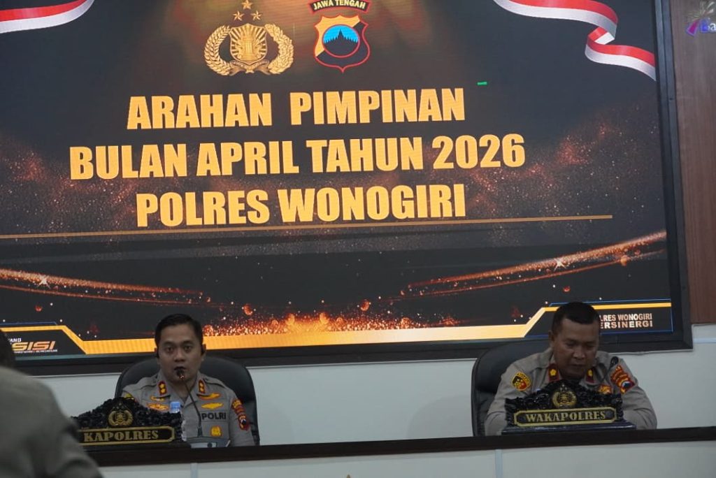 WONOGIRI Indept Jateng.My.Id – Kapolres Wonogiri AKBP Wahyu Sulistyo, S.H., S.I.K., M.P.M., menekankan pentingnya disiplin, profesionalitas, serta kesiapsiagaan seluruh personel dalam menjaga situasi kamtibmas tetap aman dan kondusif. Penegasan tersebut disampaikan saat memberikan arahan kepada Pejabat Utama (PJU) dan Kapolsek jajaran Polres Wonogiri di Aula Sanika Satyawada, Kamis (2/4/2026) pagi. Dalam arahannya, Kapolres menegaskan agar […]