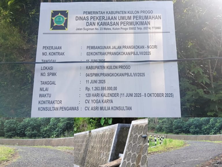 Proyek yang dibiayai APBD Kulonprogo Tahun Anggaran 2025 ini memiliki nilai kontrak Rp1.263.595.000. Pekerjaan dilaksanakan oleh CV Yoga Karya berdasarkan Kontrak Nomor 02/KONTRAK/PRANGKOKAN/PBJL/VI/2025, dengan pengawasan oleh konsultan CV ASRI MULIA KONSULTAN di bawah Dinas Pekerjaan Umum, Perumahan dan Kawasan Permukiman (DPUPKP) Kulonprogo.