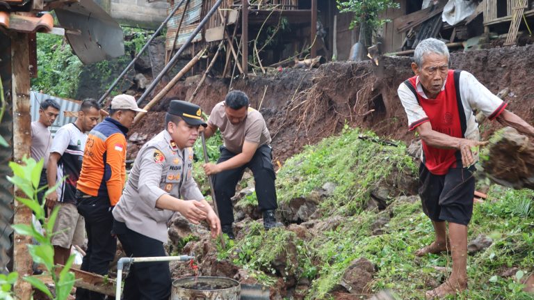 Kapolsek Wonogiri Kota IPTU Pradana Dwi Atmaja, S.H., M.H., M.Si. bersama anggota langsung mendatangi lokasi kejadian setelah menerima laporan dari warga. Petugas kepolisian bersinergi dengan personel BPBD Kabupaten Wonogiri dan masyarakat setempat untuk melakukan pembersihan material longsoran serta memastikan situasi tetap aman dan kondusif.