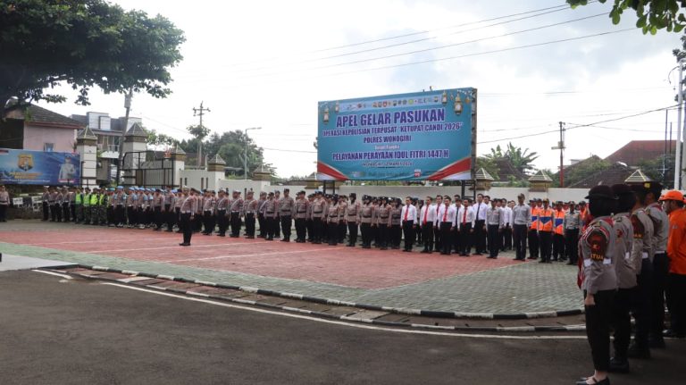 WONOGIRI Indept jateng.My.Id – Polres Wonogiri menggelar Apel Gelar Pasukan Operasi Ketupat Candi 2026 di halaman Mapolres Wonogiri, Kamis (12/3/2026). Kegiatan ini menjadi tanda kesiapan Polres Wonogiri bersama unsur TNI dan stakeholder terkait dalam mengamankan arus mudik serta perayaan Hari Raya Idul Fitri 1447 Hijriah di wilayah Kabupaten Wonogiri.