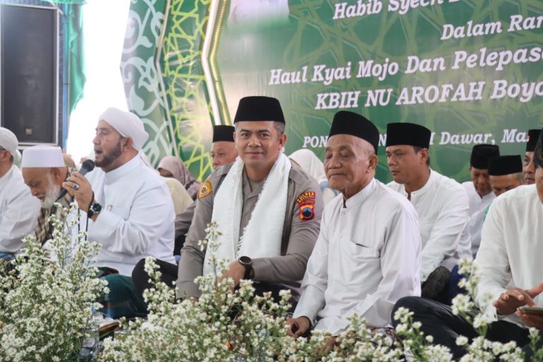 BOYOLALI, Indept Jateng.My.Id – Kapolres Boyolali AKBP Indra Maulana Saputra hadir langsung di tengah ribuan jamaah dalam kegiatan Pengajian Ahad Pon dan Sholawat bersama Habib Syech bin Abdul Qodir Assegaf yang digelar di Pondok Pesantren An-Najah, Dukuh Dawar, Desa Manggis, Kecamatan Mojosongo, Minggu (26/4/2026).
