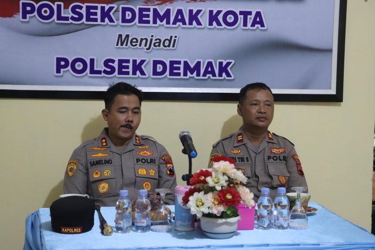 Demak Indept Jateng.My.Id polres Demak Arrizal Samelino Gandasaputra mengukuhkan perubahan nomenklatur Polsek Demak Kota menjadi Polsek Demak dalam kegiatan yang berlangsung di Aula Mapolsek setempat, Jumat (24/4/2026).