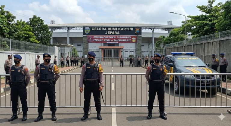 Jepara – Polres Jepara Indept Jateng.My.Id | Kepolisian Resor (Polres) Jepara, Polda Jawa Tengah, memperketat pengamanan dalam laga lanjutan kompetisi sepak bola antara Persijap Jepara menjamu Bhayangkara Presisi FC di Stadion Gelora Bumi Kartini (GBK), Jepara, pada Sabtu (11/4/2026) malam.
