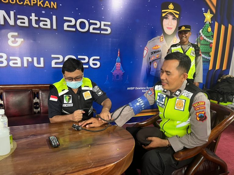 Tak sekadar siaga, Dokkes Polres Sragen melakukan pemeriksaan kesehatan menyeluruh, mulai dari pengecekan tensi, kondisi fisik, hingga kesiapan personel yang berjaga berjam-jam demi kelancaran arus lalu lintas.