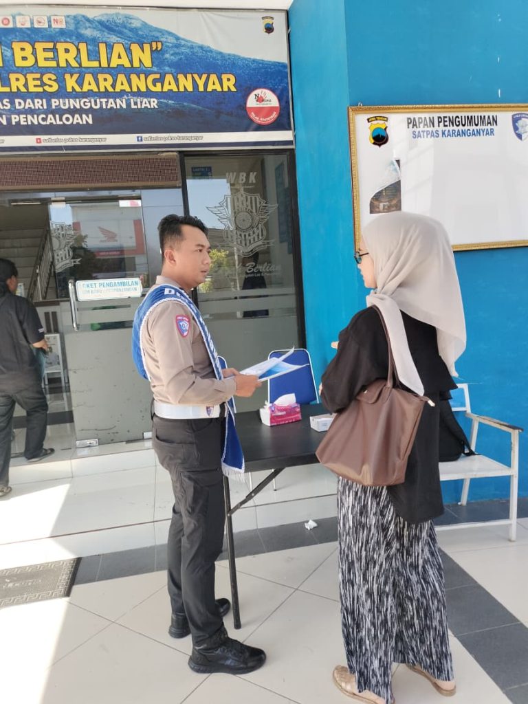 Dalam kegiatan tersebut, petugas Satlantas Polres Karanganyar memberikan penjelasan secara langsung kepada masyarakat yang sedang mengurus SIM di Satpas Karanganyar. Petugas memberikan pendampingan serta informasi terkait alur pelayanan agar masyarakat dapat memahami setiap tahapan proses pembuatan maupun perpanjangan SIM dengan jelas.