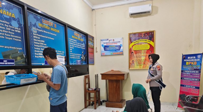 Karanganyar Indept Jateng.My.Id — Program Polantas Menyapa terus dilaksanakan oleh Satlantas Polres Karanganyar sebagai upaya meningkatkan kualitas pelayanan publik, khususnya dalam pelayanan BPKB dengan mekanisme balik nama kendaraan bermotor yang dilaksanakan di Satpas Karanganyar, Senin (12/1/2026).