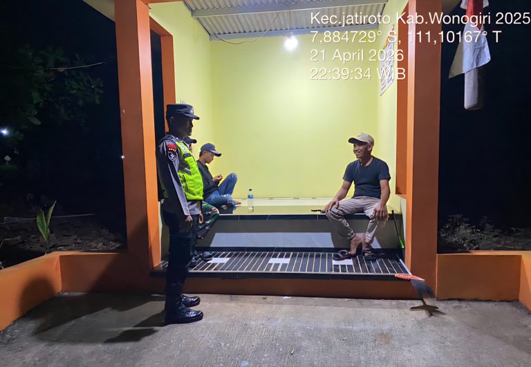 Wonogiri Indept Jateng.My.Id – Upaya menjaga keamanan lingkungan terus diperkuat jajaran Polres Wonogiri. Kali ini, personel Polsek Jatiroto melaksanakan kegiatan sambang dan pembinaan di pos satuan keamanan lingkungan (Satkamling) di wilayah Kecamatan Jatiroto, Selasa (21/4/2026) malam.