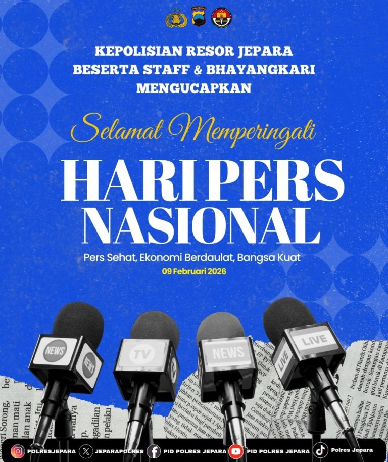 Jepara Indept Jateng.My.Id 9 Februari 2026 — Dalam rangka memperingati Hari Pers Nasional, Polres Jepara menyampaikan apresiasi dan penghargaan setinggi-tingginya kepada seluruh insan pers yang selama ini telah menjadi mitra strategis kepolisian dalam menyampaikan informasi kepada masyarakat.