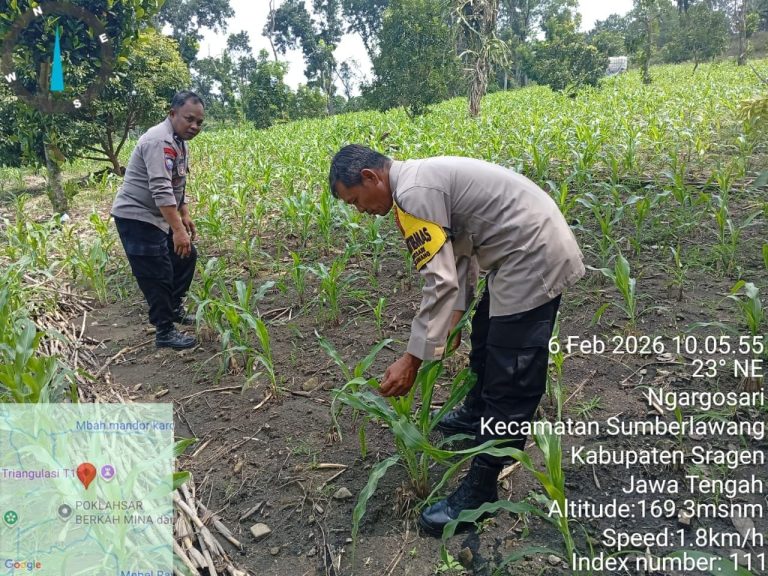 Sragen, Jateng Indept Jateng.My.Id — Polsek Sumberlawang, Polres Sragen, turun langsung melakukan pengecekan lahan tanam jagung di Lahan Baku Sawah (LBS) Kwartal I yang berlokasi di Dukuh Bulakrejo, Desa Ngargosari, Kecamatan Sumberlawang, Kabupaten Sragen, Jumat (6/2/2026).