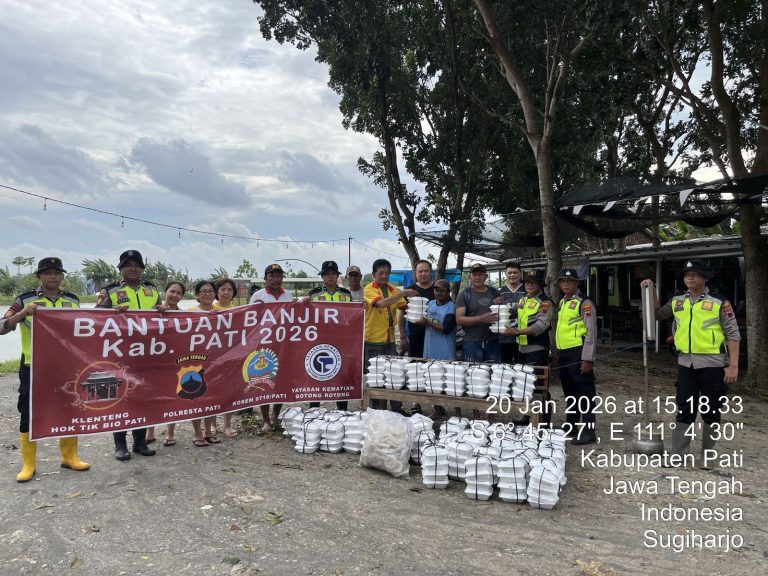Pati Indept Jateng.My.Id – Jajaran Sat Samapta Polresta Pati menyalurkan bantuan kemanusiaan berupa paket makanan MBG kepada warga terdampak bencana banjir di sejumlah wilayah Kabupaten Pati, Selasa (20/1/2026). Kegiatan ini menjadi wujud kepedulian Polri terhadap masyarakat yang terdampak banjir akibat intensitas hujan tinggi.